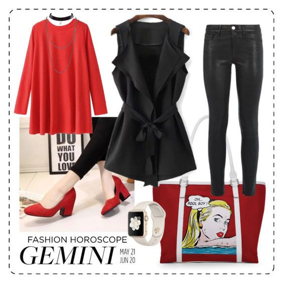 E hoje no dia do meu aniver 🎂 (06/06), vai aí uma inspiração em #look zinho que montei há alguns anos no polyvore, pras geminianas ♊🤗 #geministyle #casualoutfit despojadinho #red, #colete #alfaiataria bolsa #gracekelly #choker, legging de #couro e saltinho confortável... USARIA? Comente 😁😘😘